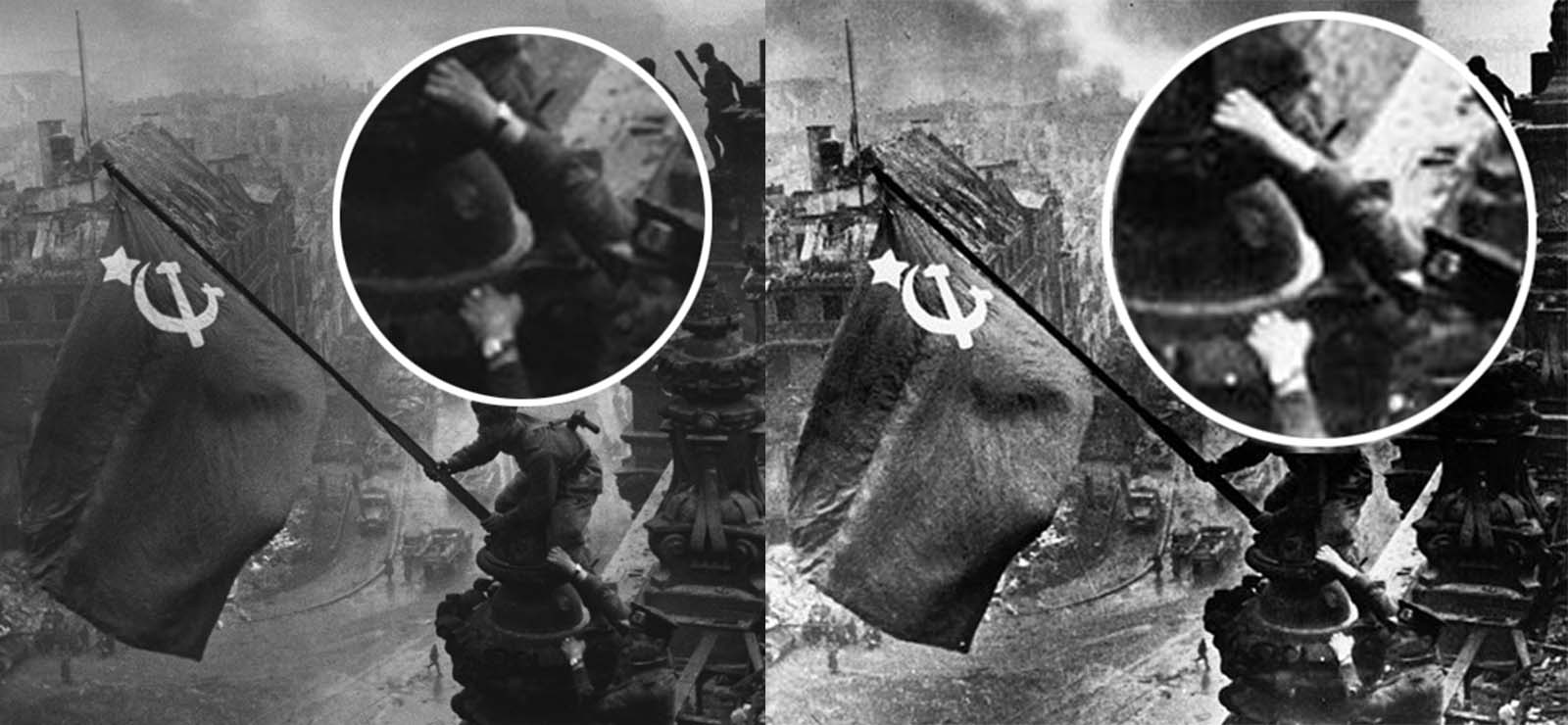 The Polish-born Dmitri Baltermants had planned to be a math teacher but instead fell in love with photography. Just as World War II broke out, he got a call from his bosses at the Soviet government paper Izvestia: “Our troops are crossing the border tomorrow. Get ready to shoot the annexation of western Ukraine!” At the time the Soviet Union considered Nazi Germany its ally. But after Adolf Hitler turned on his comrades and invaded the Soviet Union, Baltermants’ mission changed too. Covering what then became known as the Great Patriotic War, he captured grim images of body-littered roads along with those of troops enjoying quiet moments. In January 1942 he was in the newly liberated city of Kerch, Crimea, where two months earlier Nazi death squads had rounded up the town’s 7,000 Jews. “They drove out whole families—women, the elderly, children,” Baltermants recalled years later. “They drove all of them to an antitank ditch and shot them.” There Baltermants came upon a bleak, corpse-choked field, the outstretched limbs of old and young alike frozen in the last moment of pleading. Some of the gathered townspeople wailed, their arms wide. Others hunched in paroxysms of grief. Baltermants, who witnessed more than his share of death, recorded what he saw. Yet these images of mass Nazi murders on Soviet soil were too graphic for his nation’s leaders, wary of displaying the suffering of their people. Like many of Baltermants’ photos, this one was censored, being shown only decades later as liberalism seeped into Russian society in the 1960s. When it finally emerged, Baltermants’ picture allowed generations of Russians to form a collective memory of their great war. “You do your work the best you can,” he somberly observed, “and someday it will surface.”