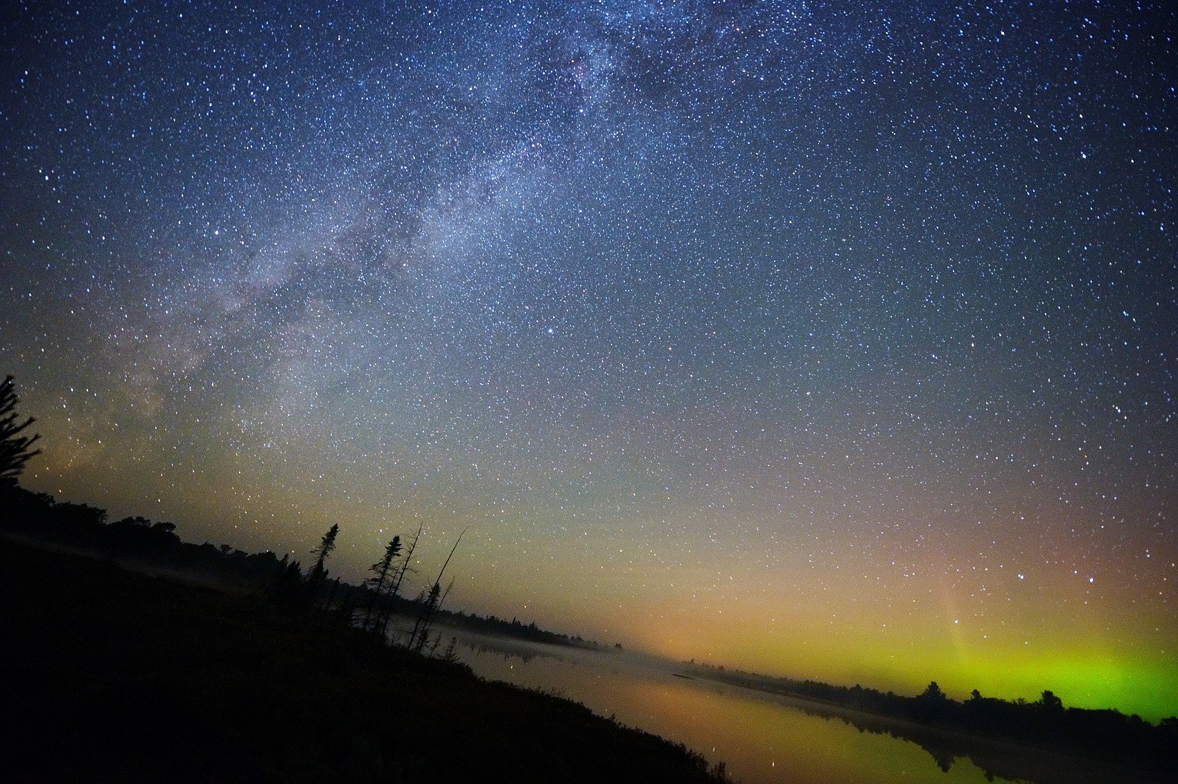This is not a photo, at best it is heavily composited from multiple items. If this was an "art" contest that would be fine, but not for a photography contest. The sky is basically pasted in then flipped for the reflection effect for the water. In order to take a shot of the milkyway you would be taking a 20-30 second exposure. There is no way two people would be able to stand perfectly still for 20 seconds, nor would the dress be positioned like that with the back part of the dress hanging in mid air for 20 seconds. Also, astrophotography shots are typical shot with an ultrawide angle lens to allow for longer exposures without star trails and motion of the milky way, which would mean the people who were on the horizon would be severely pushed to the background and would be tiny in the frame. The perspective here is closer to a "normal" angle of view. There are tonnes of other issues with this image. Here is a photo which I have taken of the milky way, picture the couple on the horizon. DSC_2425-5...770fed.jpg
