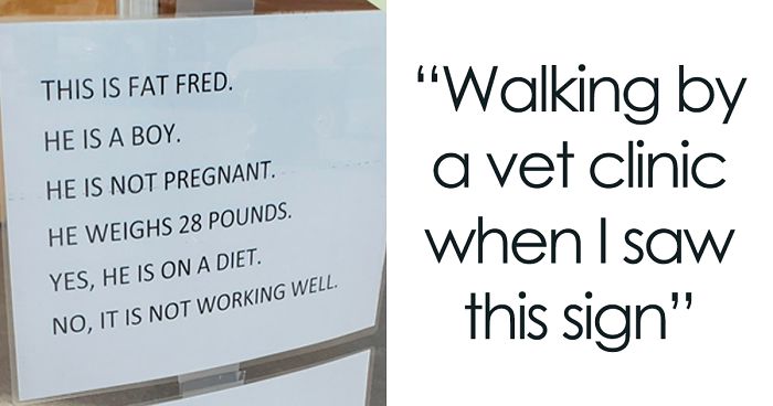 22.3K Meet Fat Fred, A Cat Who Is Going Viral After Someone Posted Photos Of A Vet Clinic’s Hilarious Sign