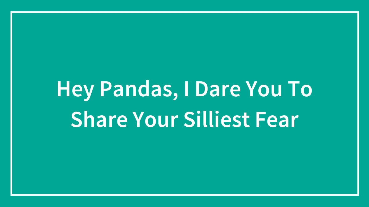 Dishita Bharath 1Kviews Hey Pandas, I Dare You To Share Your Silliest Fear (Closed) Trending questions in Ask Pandas Hey Pandas, What's The Dumbest Ways You Ever Got Hurt? 3replies By Madeleine Christiansen Hey Pandas, What Do You Think Is The Function Of Life? 0replies By Valerie Fallera Hey Pandas, What If Consciousness Could Be Explained Physically? 1reply By Valerie Fallera Hey Pandas, What Are The Five Things You Must Do In Your Lifetime?" 0replies By MystyMoonShadow