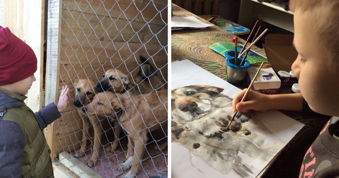 76.6K This 9-Year-Old Russian Boy ‘Sells’ His Custom Pet Paintings For Food And Supplies For Shelter Animals