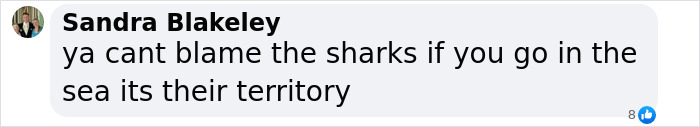 “Ya cant blame the sharks if you go in the sea its their territory,” someone stated.