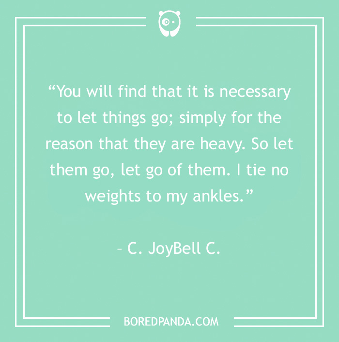 “You will find that it is necessary to let things go; simply for the reason that they are heavy. So let them go, let go of them. I tie no weights to my ankles.” – C. JoyBell C.