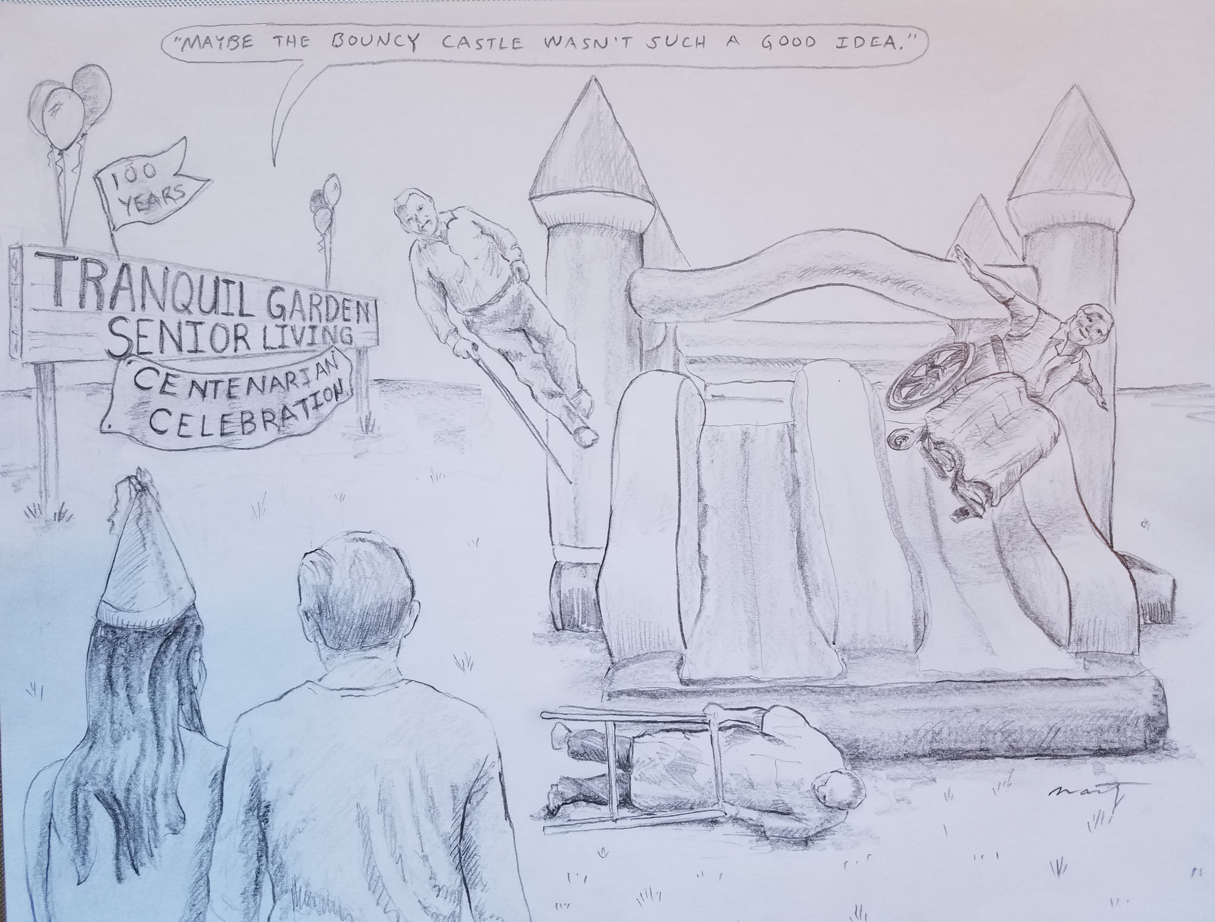 🤣🤣 I love the shading. Well done, you! I can almost "hear" the fella in the wheelchair saying, "WEeeeEEeeeEE"