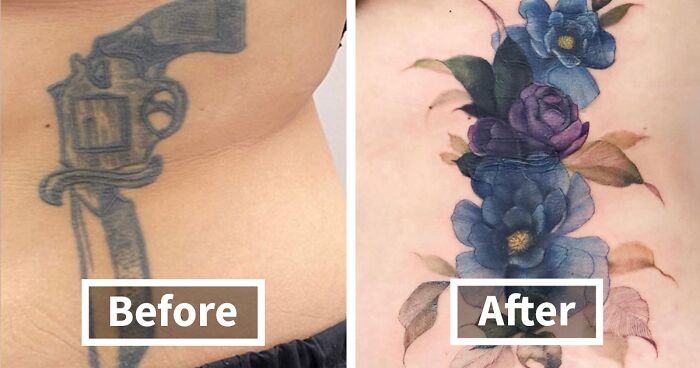 For example, if you cover yellow with blue, it becomes greenish-blue. You can also use the dark parts of the old tattoo to create contrast in the new design. Achieving good results depends heavily on this knowledge and experience.