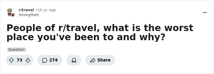 That’s what this list is all about—people sharing which travel destinations were everything (or more than) they wanted and which were very far from it. Let this list serve as a guide to help you decide which places are worth visiting and which might not be—at least according to people online.