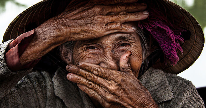 When a friendship has been established between the two of them, then and only then does he gets his camera out in order to capture the moment. In his stunning pictures, smiles are often shyly hidden by their hands. Réhahn calls them his “Hidden Smiles”. During his travels, he’s noticed that many Vietnamese people often have the habit of covering their mouths when facing the camera. He assumes that this is by modesty or politeness, a sort of mark of elegance.