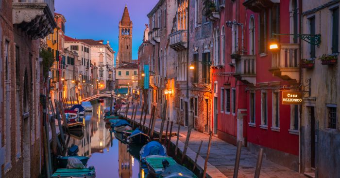 The blue hour in Venice is magical. Pick your street, canal and start shooting. Fun fact: this tower is not straight!