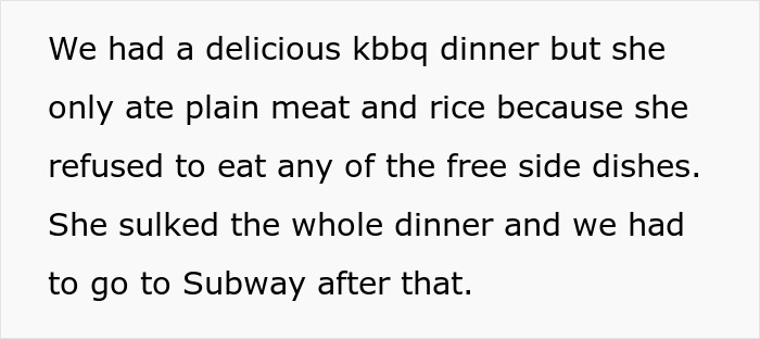 Family Vacation Turns Sour As Cousin Rejects Korean Food, Insults Dishes, And Sulks Through Meals