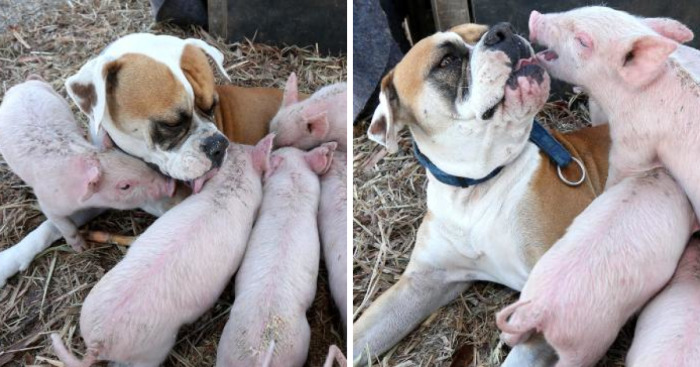 Former Stray Dog Adopts 8 Tiny Pigs And That’s The Sweetest Thing You’ll See Today