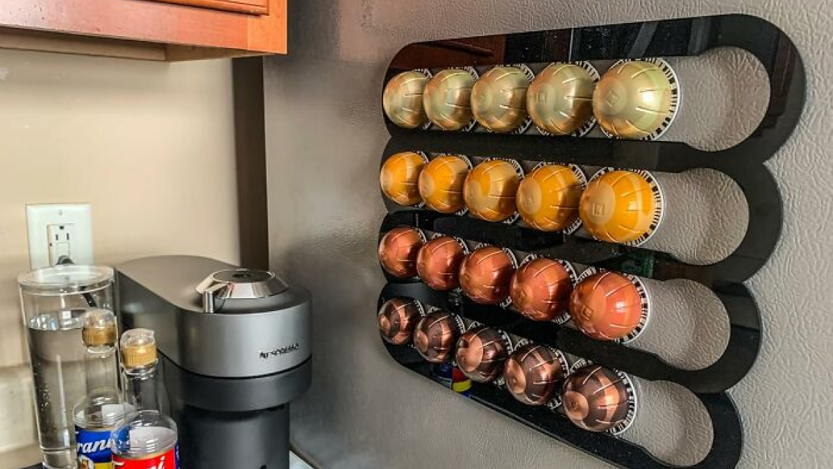 That Awkward Empty Space On The Side Of Your Fridge Is About To Become Your Own Personal Coffee Station With This Magnetic Coffee Pod Holder