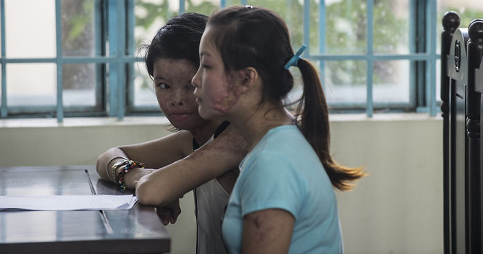 Since the burn was too severe, Ms. D. was transferred to Cho Ray Hospital (HCM city) for treatment. As consequence, D was suffered acid burn destroying her entire face, multi burns, left eye and left ear injuries, the injury rate was 54%. Ms. S. was also burned the face and many parts of the body, the injury rate was 37%.