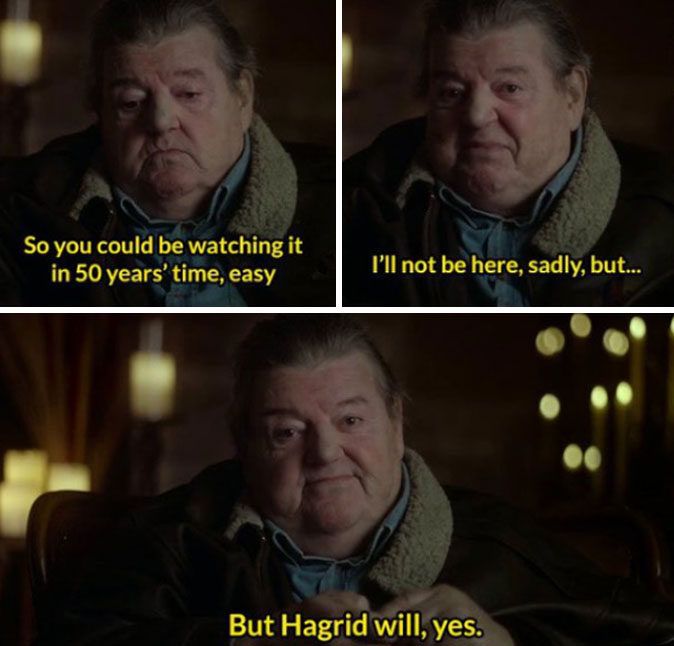 Robbie’s statement during the 20th Anniversary: Return to Hogwarts special hit everyone right in the feels once the news came out: “The legacy of the movies is that my children’s generation will show them to their children. So you could be watching it in 50 years time, easy. I’ll not be here, sadly, but Hagrid will, yes.”
