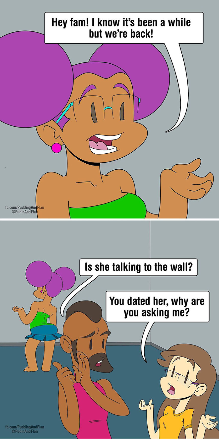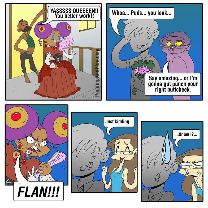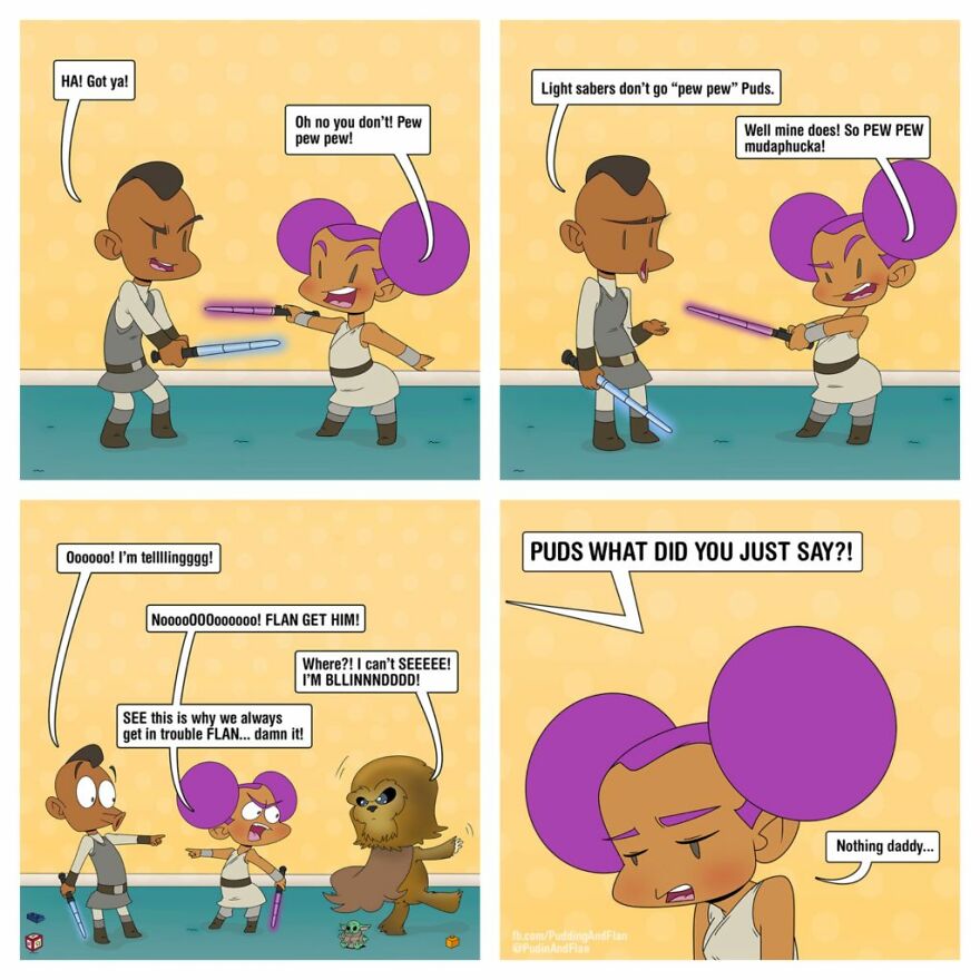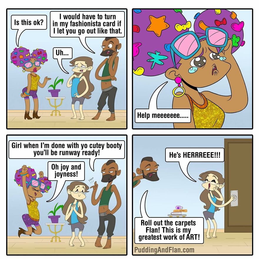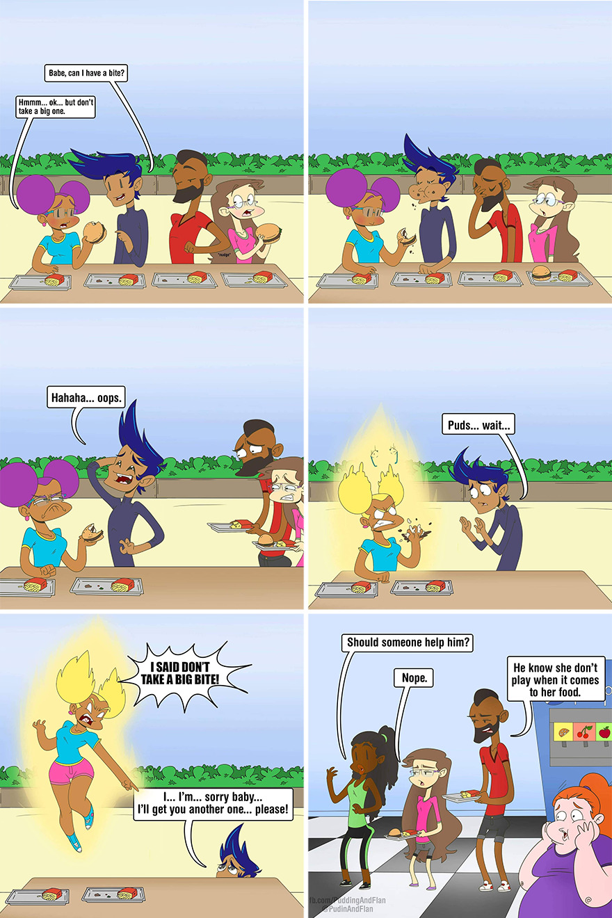 Therefore seeing yourself in a comic based on your real life and sharing that comic with two more friends must feel extra special. That is what the “Pudin and Flan” comic is all about. This comic is the creation of three creative minds: Destinee Cleveland, Jackie King, and James Averett. The adventures that these characters have are both fun and relatable, yet sometimes touch on more difficult topics too.