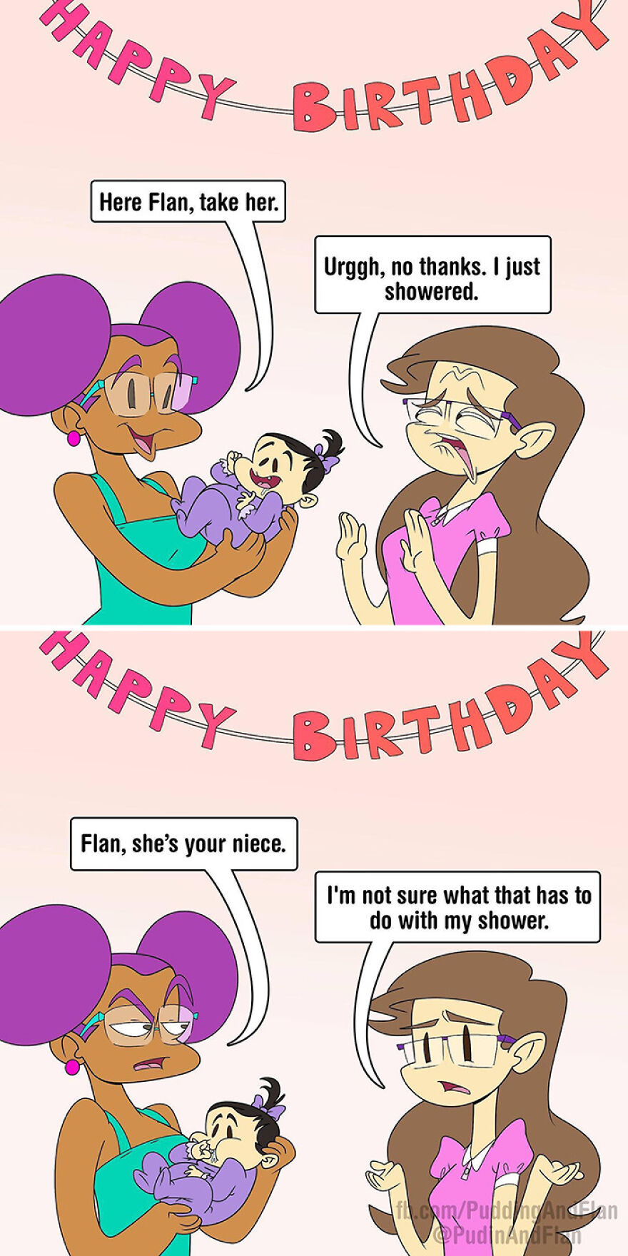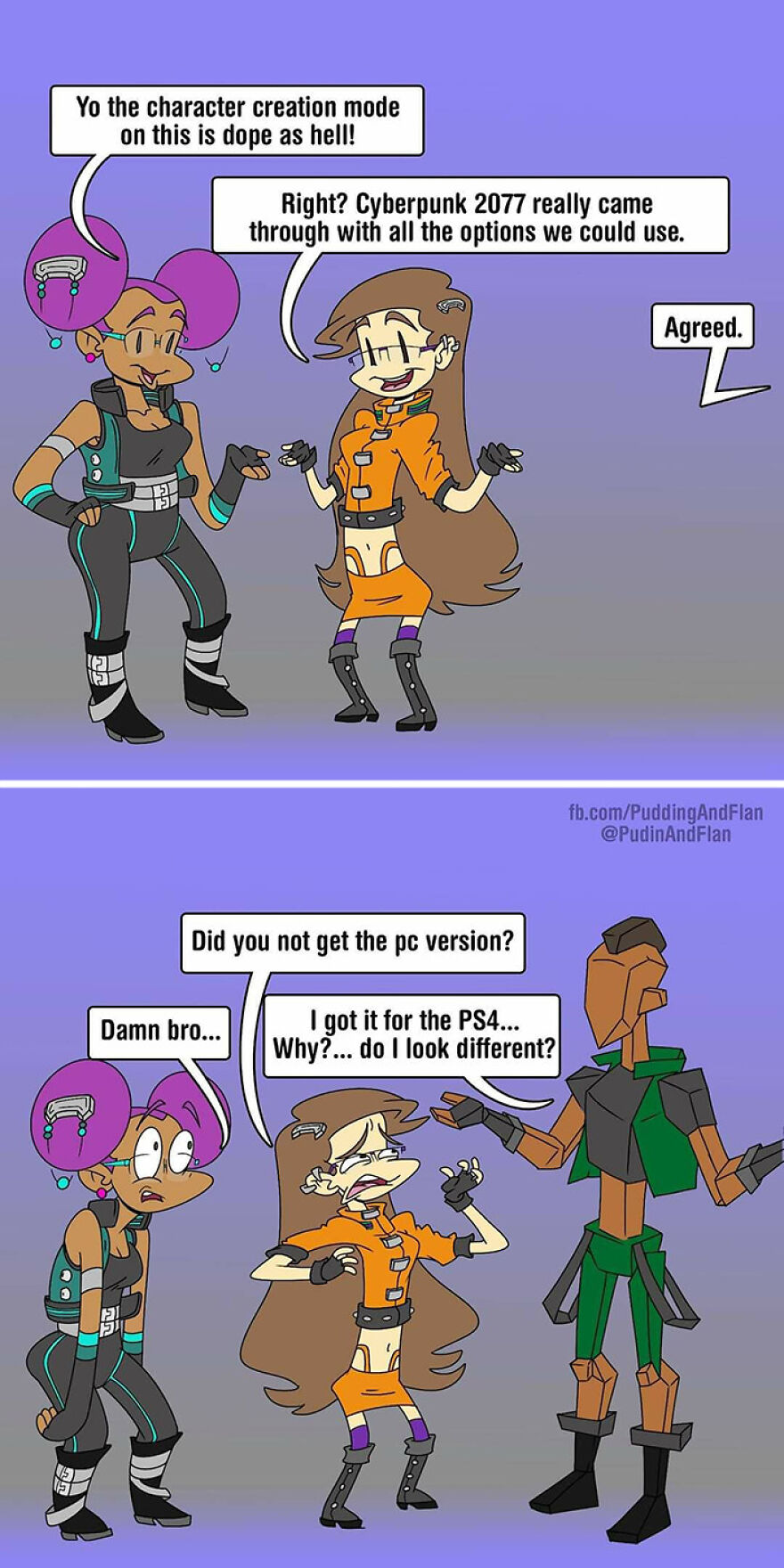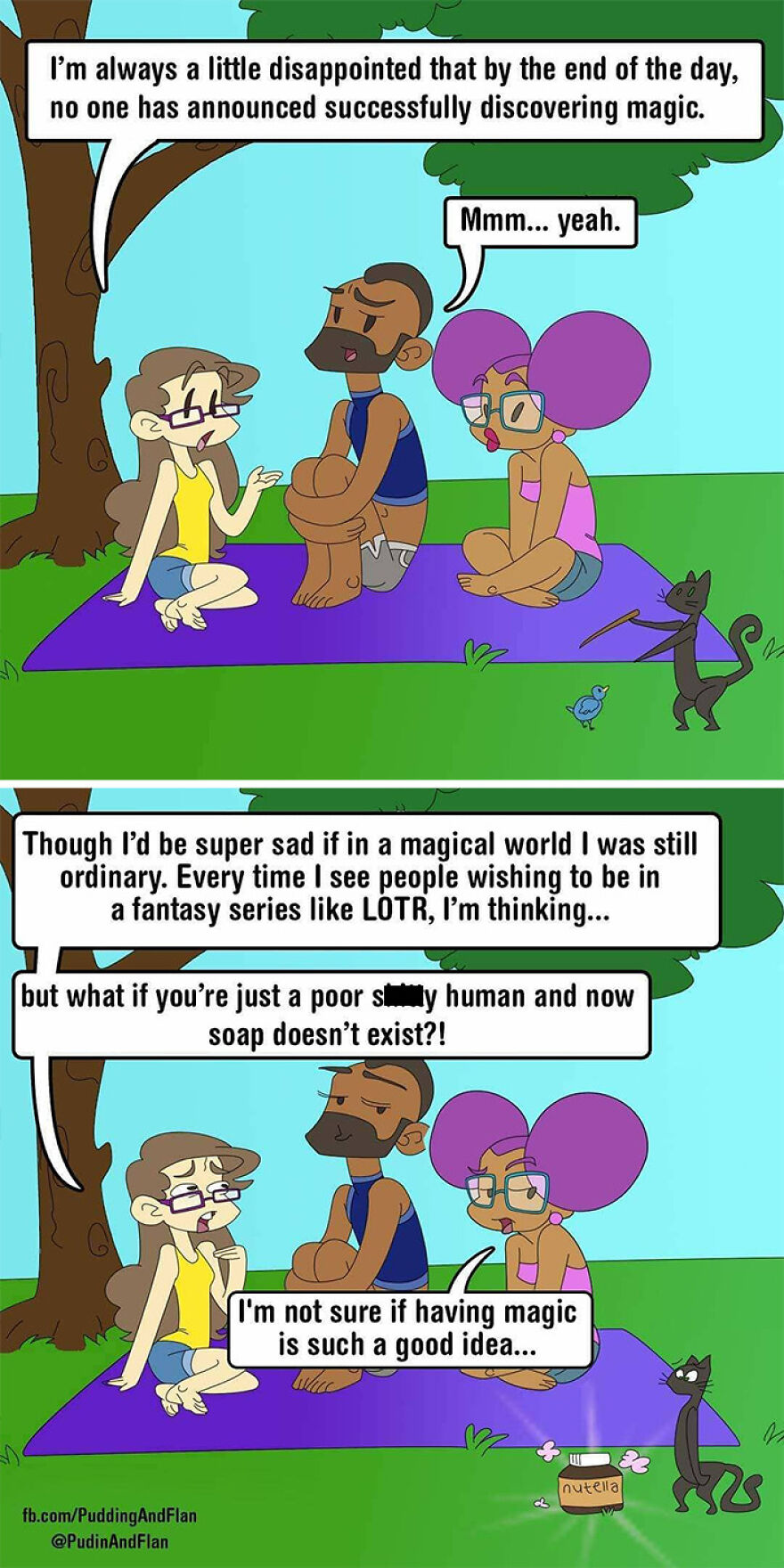Therefore seeing yourself in a comic based on your real life and sharing that comic with two more friends must feel extra special. That is what the “Pudin and Flan” comic is all about. This comic is the creation of three creative minds: Destinee Cleveland, Jackie King, and James Averett. The adventures that these characters have are both fun and relatable, yet sometimes touch on more difficult topics too.