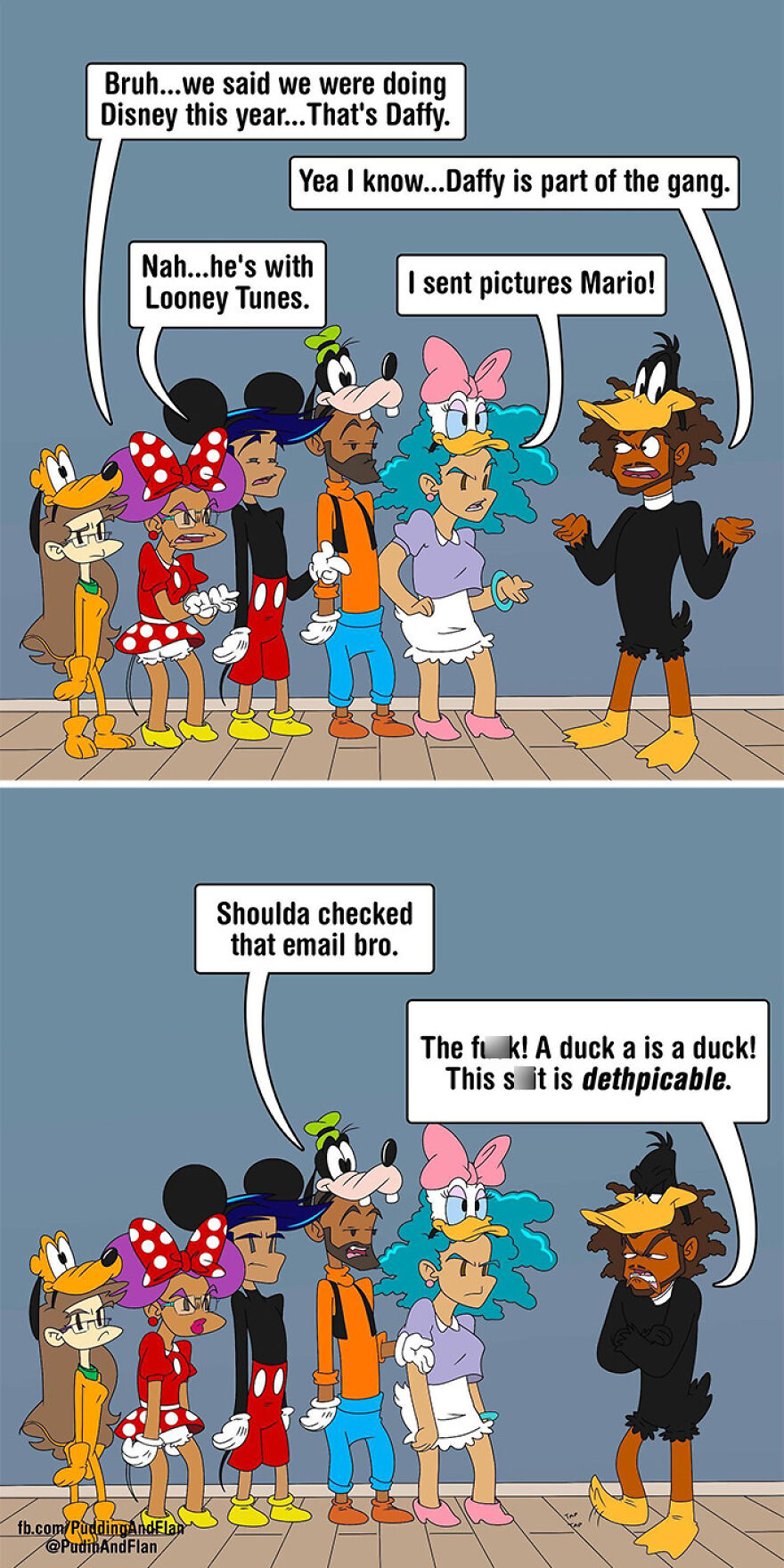 If u think bout it daffy has a lisp and donal haz... what evers goin on with his throat... but the still duck jusg put a sailor outfit on lol