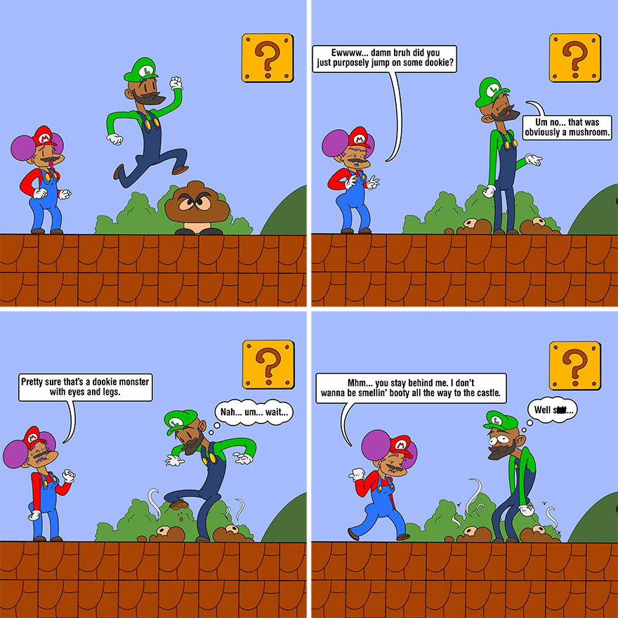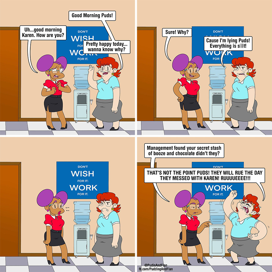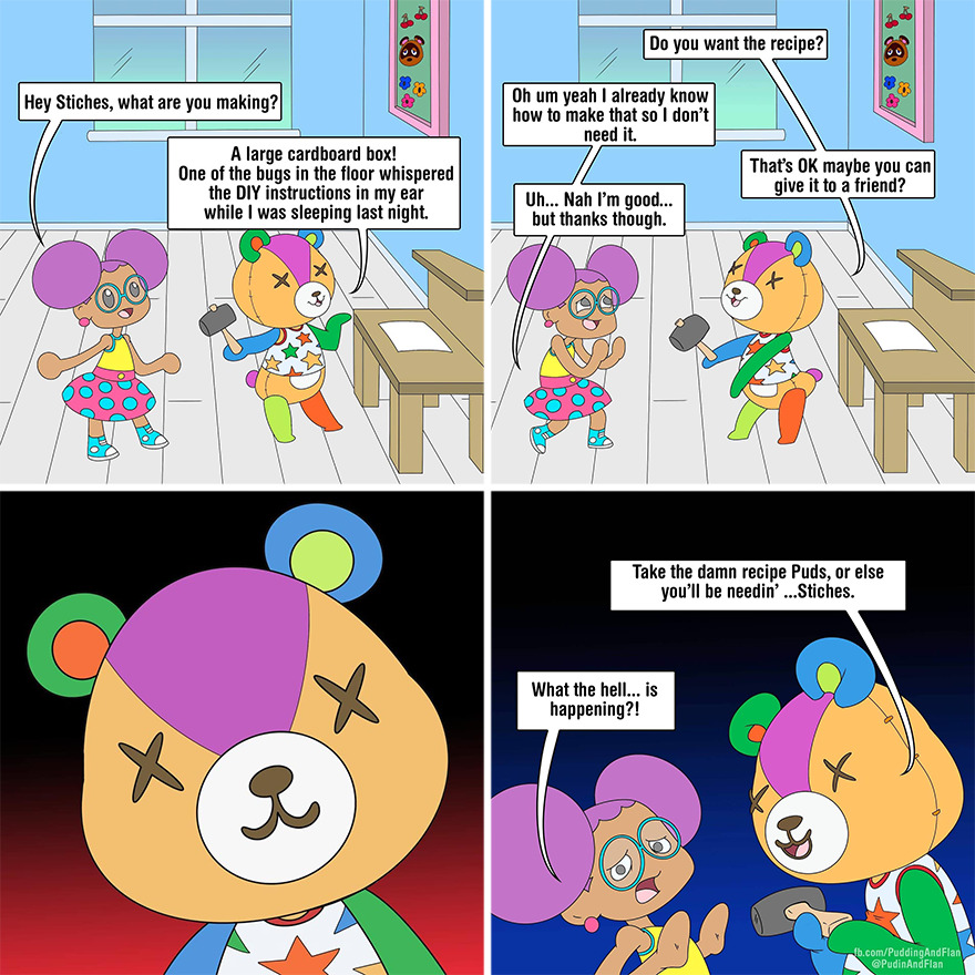 Working with your friends sounds fun, but making the comic requires actual work, such as discussing new ideas. The artist shared how they manage to accomplish that. “We’re always thinking of hilarious things, and we actually have a pitch board in Slack where we’re constantly updating ideas and refining them for the comic. We all work full-time, so it’s hard to schedule meetings, but Slack keeps everything organized so we can comment when we can and suggest changes.”