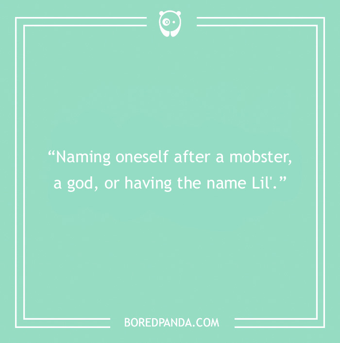 "Naming oneself after a mobster, a god, or having the name Lil'."