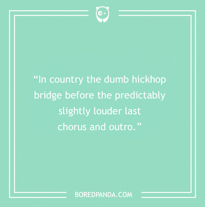 "In country the dumb hickhop bridge before the predictably slightly louder last chorus and outro."