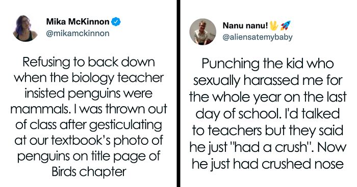 These people took to Twitter to share their stories of getting into trouble at school… for ridiculously silly reasons. From sparing lab frogs’ lives to getting detention for chilling at detention without having been sent to detention, here are 39 scenarios where people got into trouble at school because of something very silly. Scroll down to see the whole list and consider upvoting the entries that crack you up the most!
