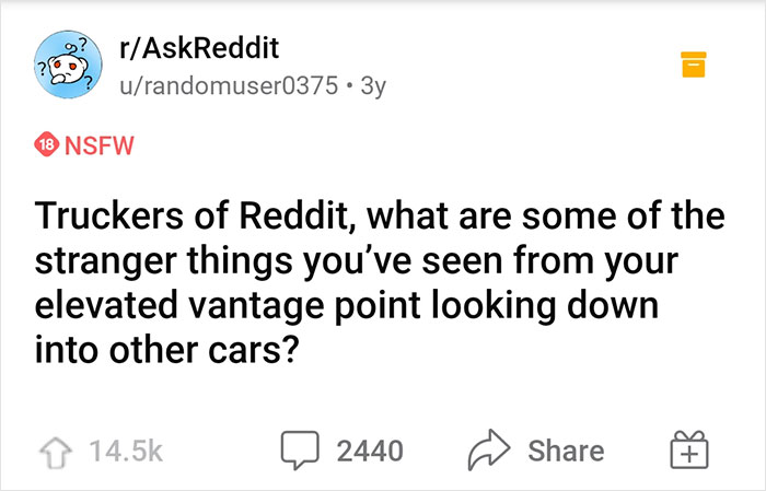I was the "odd thing" a trucker saw. Was bored out of my mind as a passenger on a never-ending road trip so I flashed a couple of truckers. I'm 45 and my mother would be scandalized. Lol