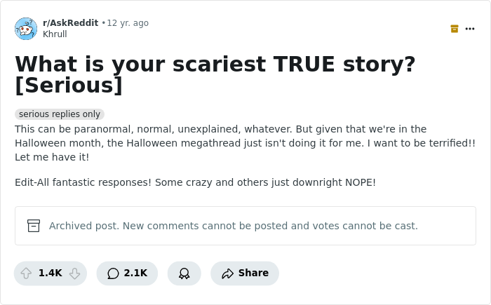 If you love giving yourself a jolt of adrenaline, you may enjoy these Reddit responses. If you don’t, you may want to avoid reading these in the middle of the night.