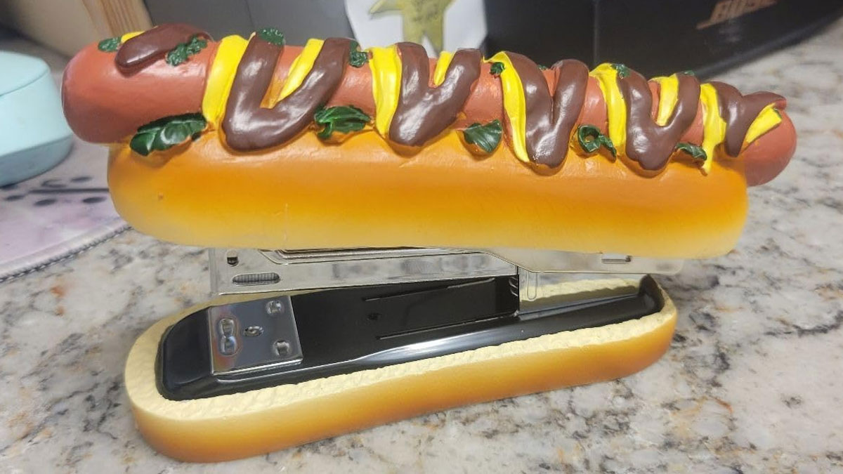 Review: "Functional stapler with a cute design! Got it as a birthday gift for a girl in my office! She loves it and it’s a big conversation starter on our small office! It’s perfect! The hot dog is very sturdy and doesn’t impact the function or use of the stapler at all." - Chelsea Davis