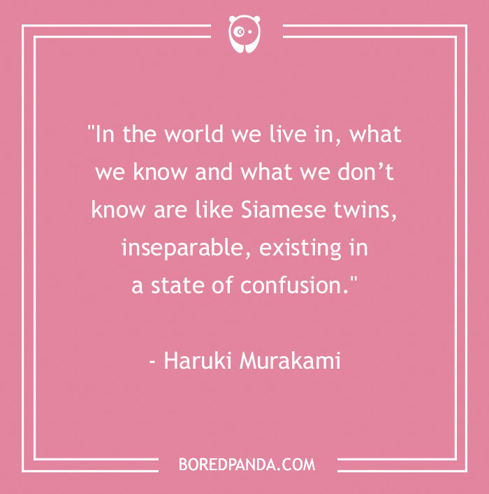 "In the world we live in, what we know and what we don’t know are like Siamese twins, inseparable, existing in a state of confusion." – Haruki Murakami