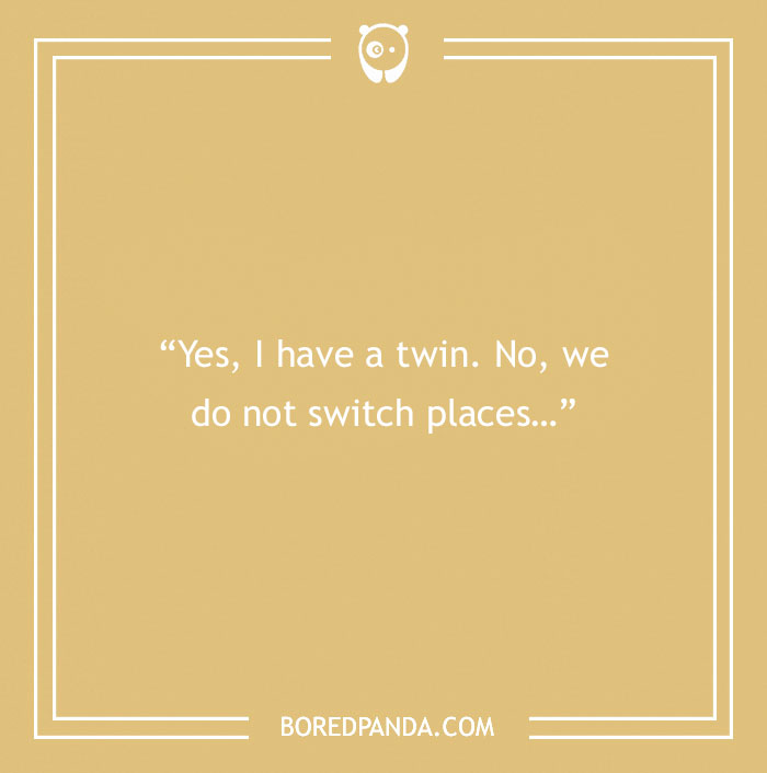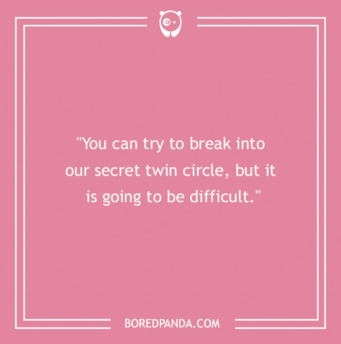 “A twin sister is like a good BRA. Supportive, comfortable, there to lift you up, and always close to your heart.”
