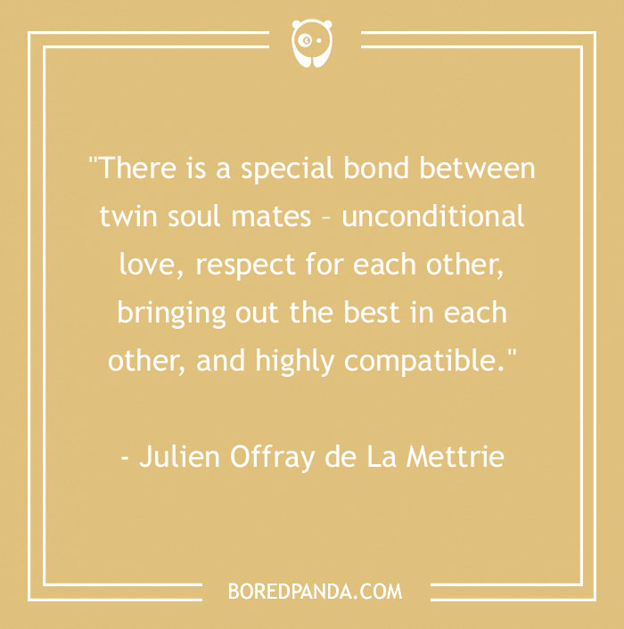 "There is a special bond between twin soul mates – unconditional love, respect for each other, bringing out the best in each other, and highly compatible." – Julien Offray de La Mettrie