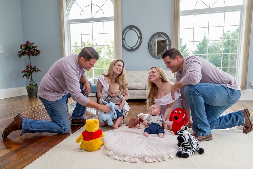 Safe to say that the Salyers make up quite a unique family. It all started when identical twins Brittany and Briana met identical twins Josh and Jeremy at a twin festival in 2017. A year later, Brittany married Josh and Briana married Jeremy in a double wedding ceremony. What is even more surprising is that the sisters became pregnant only a few months apart and both gave birth to boys.