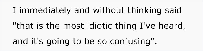 Load More Replies...I think its a stupid and dangerous idea. The confusion for their parents or other people is going to be the least important thing. The most importantly aspect is about their sense of individuality. Name is an important aspect in personal identification. Imagine not only having someone beside you your whole life but also with a same name. Parents of twins have to practice to value eachkid as an individual but they are doing the exact opposite. I feel sorry for the kids :(
