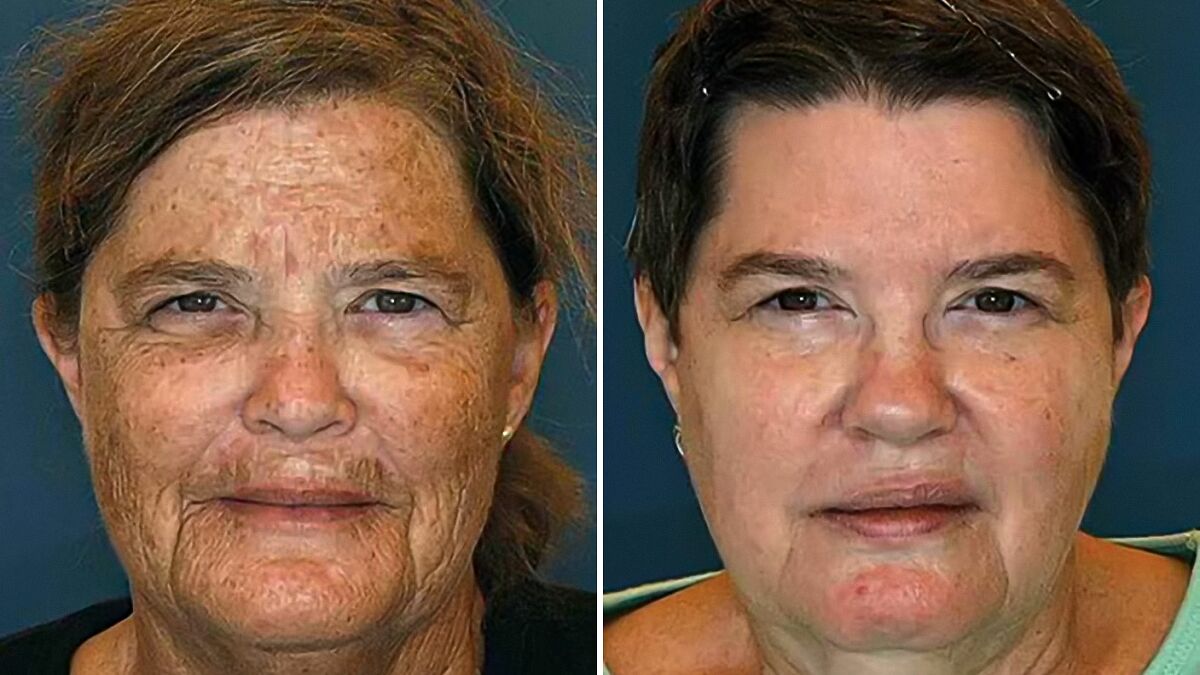 Susan had smoked for 16 years, used to sunbathe, and also weighed 15 lbs less than Jeanne, leading to patchy discoloration, age spots, and reduced skin elasticity in Susan’s face.