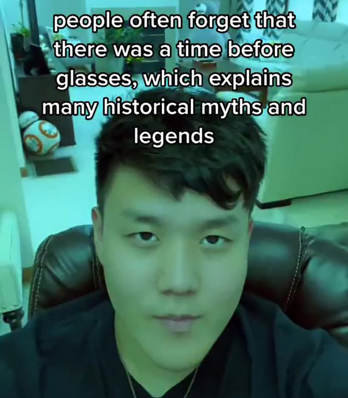 TikToker @ShowerThoughtsWMike pointed out that people often forget that there was once a time when glasses weren’t a thing, which potentially explains many historical myths and legends.