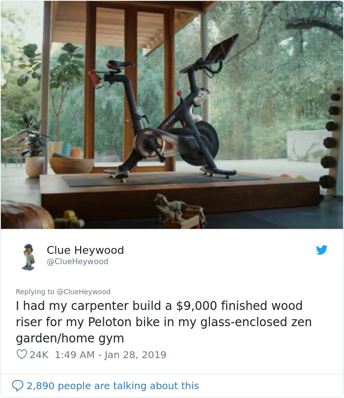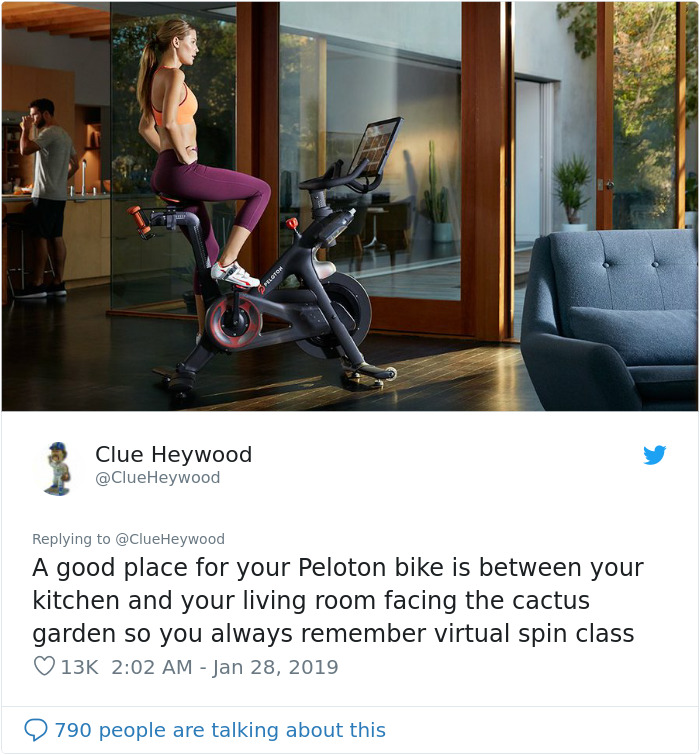 It seems that what people hated the most was the unattainable image of a fancy lifestyle the Peloton stationary bike company was advertising, and how somehow you could easily be a part of this world just by purchasing this gym machine. Scroll down to see all the jokes yourself, and don't forget to tell us what you think in the comments!