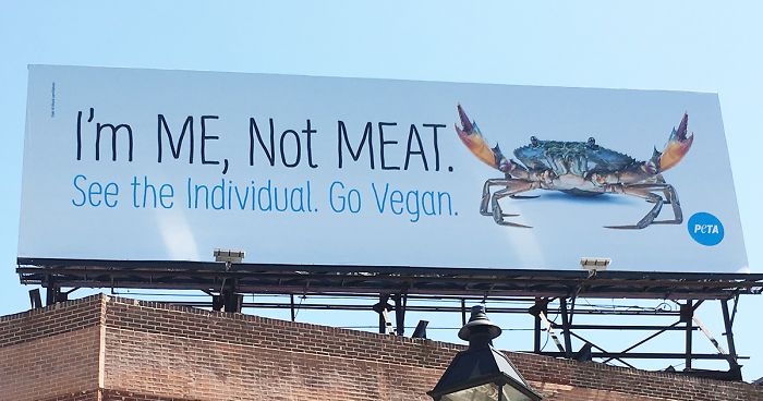 The animal rights organization posted a huge billboard in the city, urging people to see each crab as an individual with a personality and go vegan. The scientific name for the species, Callinectes sapidus, means ‘savory beautiful swimmers’ in English, which pretty much sums up just how long we have been craving the sweet meat of these abundant creatures. Did PETA think the billboard would make any difference to people’s eating habits? Who knows. But it certainly did get people talking!