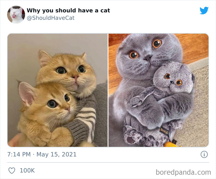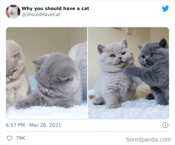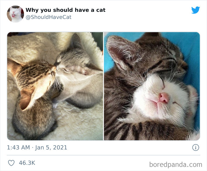Remember to upvote your fave cat pics as you scroll down. Just imagine that each upvote is like petting the pets. Oh, and there really are tons of benefits to having more cats. Not just for you—for the pets themselves. On the other hand, you should also be aware that far from every cat wants to have company: some felines find having a strange cat in their home very stressful.