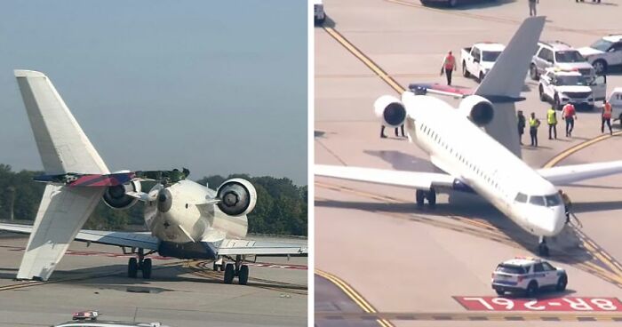 Dramatic photos captured in the aftermath show the smaller plane’s tail bent at almost 90-degree angle. Aboard the Endeavor Bombardier were 56 passengers, while the Airbus carried 221. Thankfully, no injuries have been reported.