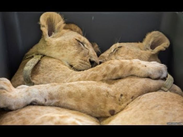 Two Inseparable Lion Cubs Caught Cuddling After Refugee Camp Rescue