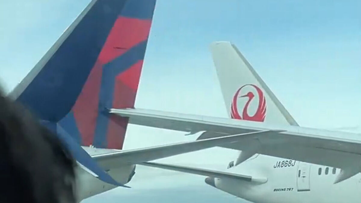 A Japan Airlines jet has crashed to the tail of a Delta passenger plane