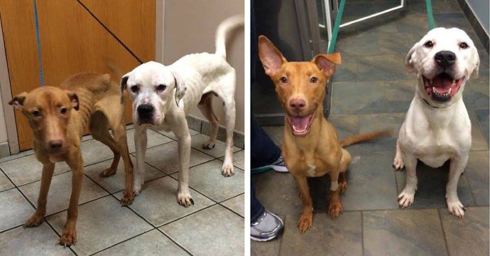 These two dogs, found starving in an abandoned building by the Chicago Police Department back in July, underwent a stunning transformation showing the difference that, love, expert care, and the right food can make.