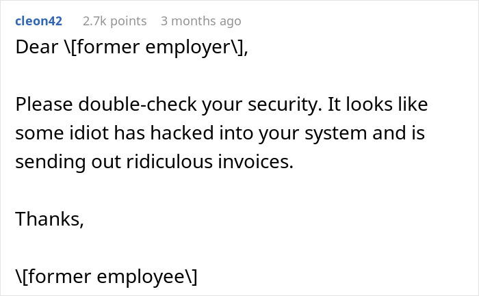 Most of the commenters just laughed at this invoice and even suggested the author send their former boss 150 Monopoly dollars