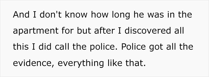She doesn’t know how long he stayed in the apartment, but as soon as she learned everything, she notified the authorities.