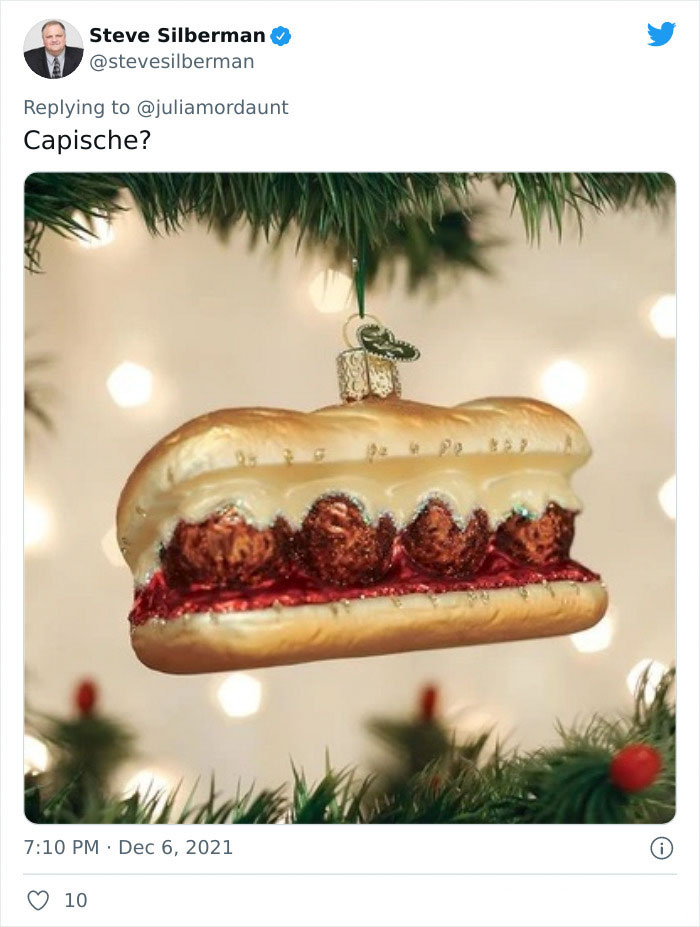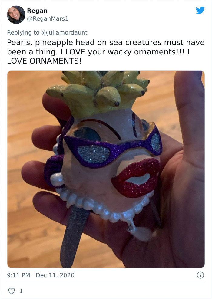 These are hilarious i love weird random Christmas tree decorations 😂 i have ones shaped like squids, lobsters, glittery sprouts, dinosaurs and a pack of crayons on mine with a bat on the top 😅