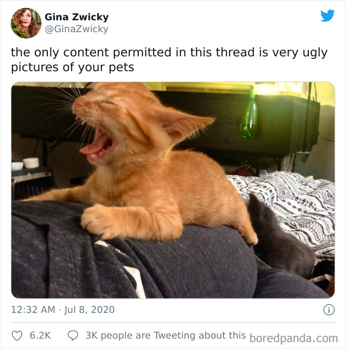 But this Twitter thread is a safe space to share the most unattractive pics of our furry companions. Started by Gina Zwicky, it only permits “very ugly pictures of your pets.” As you scroll down below, you’ll realize that "very ugly" has levels of its own, which just makes it all the more hilarious.