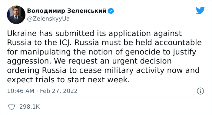 — Володимир Зеленський (@ZelenskyyUa) February 26, 2022