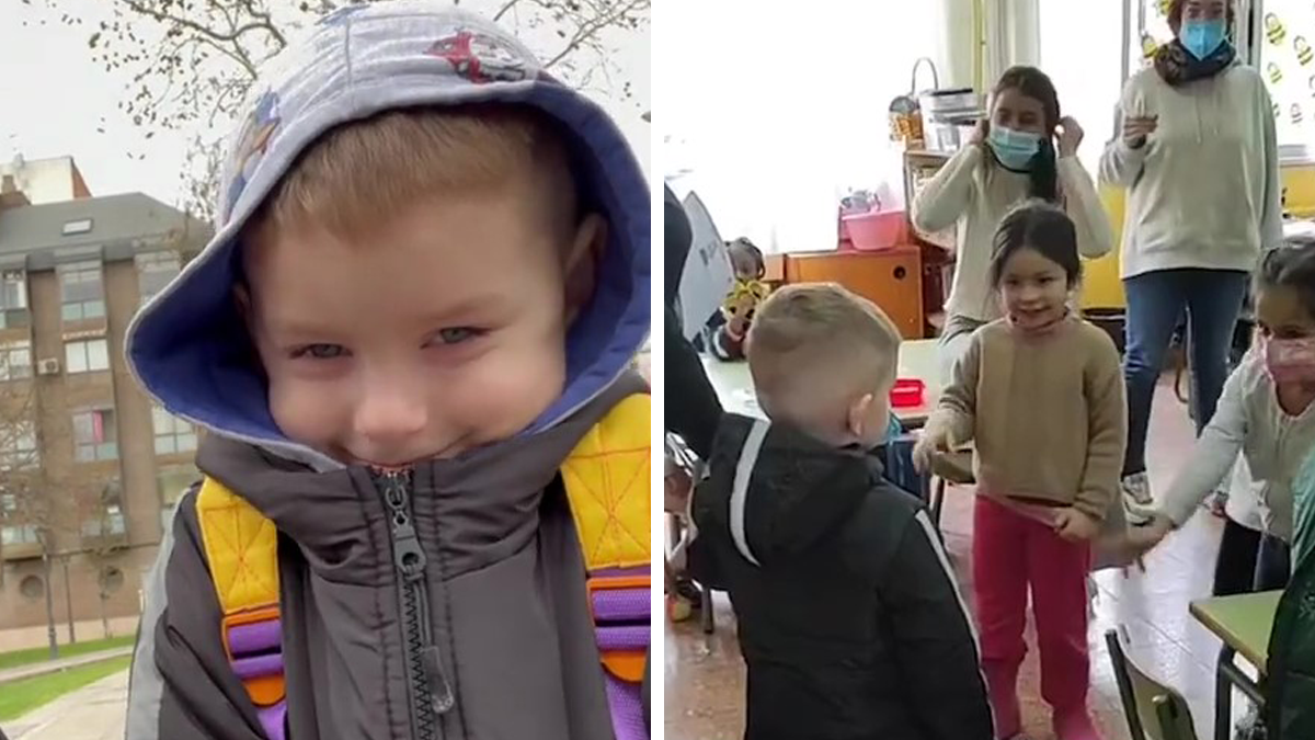 In A Heartwarming Moment, Ukrainian Boy Is Hugged By New Spanish Classmates On His First Day Of School