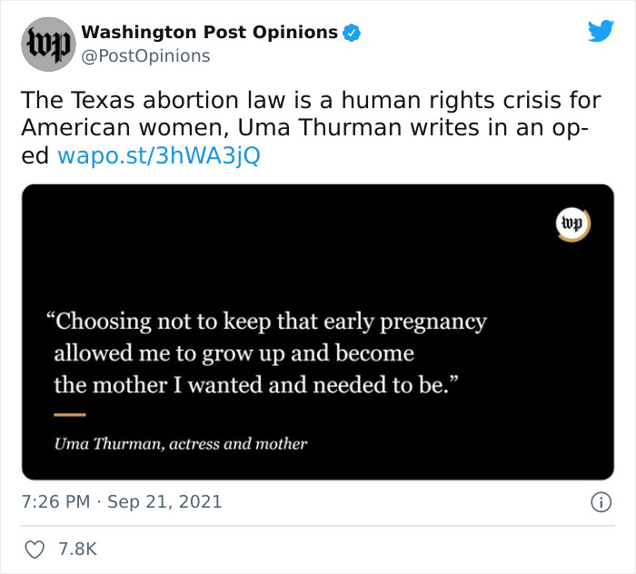 In Response To The Controversial Heartbeat Act In Texas, Uma Thurman Shares Her Abortion Story From Three Decades Ago