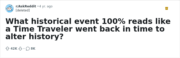 Yet some people already speculate that time traveling is possible. When they look at some historical events, a time traveler seems to be the only logical explanation. We came across an online thread where people were sharing their most bonkers time traveler theories, prompted by one netizen asking: "What historical event 100% reads like a Time Traveler went back in time to alter history?" And we present to you the wildest ones below!