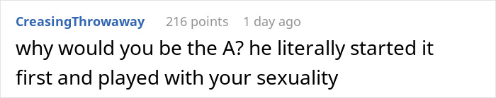 Now, opinions are split. Some family members say Dave deserved it, while others say outing someone, even a homophobic jerk, is never okay. OP feels torn. After years of jabs and veiled insults, it felt like justice. He admits to the community that outing someone is dangerous, but is now wondering if he crossed a line, or if Dave’s hypocrisy finally had to be challenged.